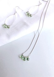 ☆しずく型チェコビーズ(クリアグリーン系)を三つ並べたシンプルなネックレスです
