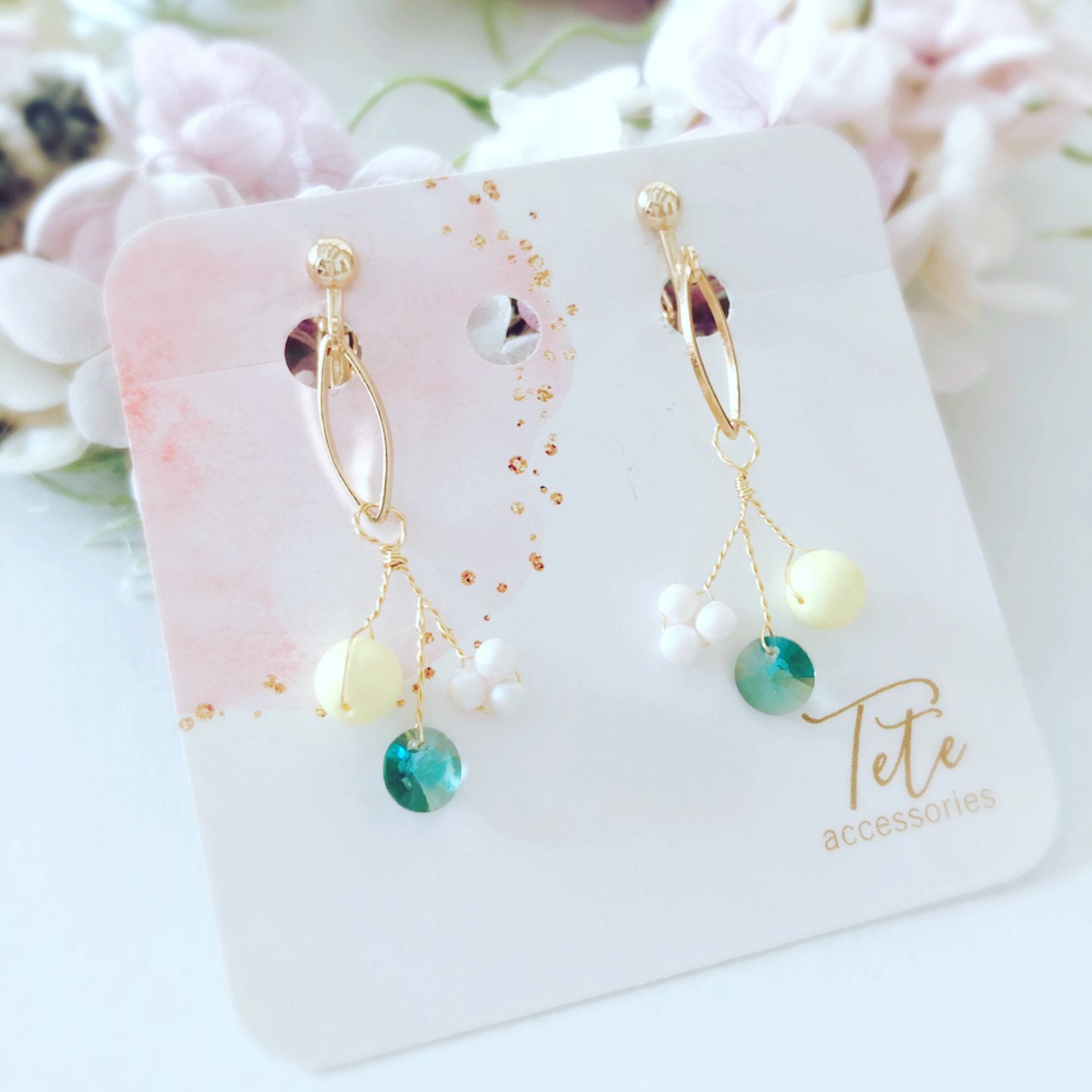 グリーン✖️ペールイエロー☆揺れるイヤリング