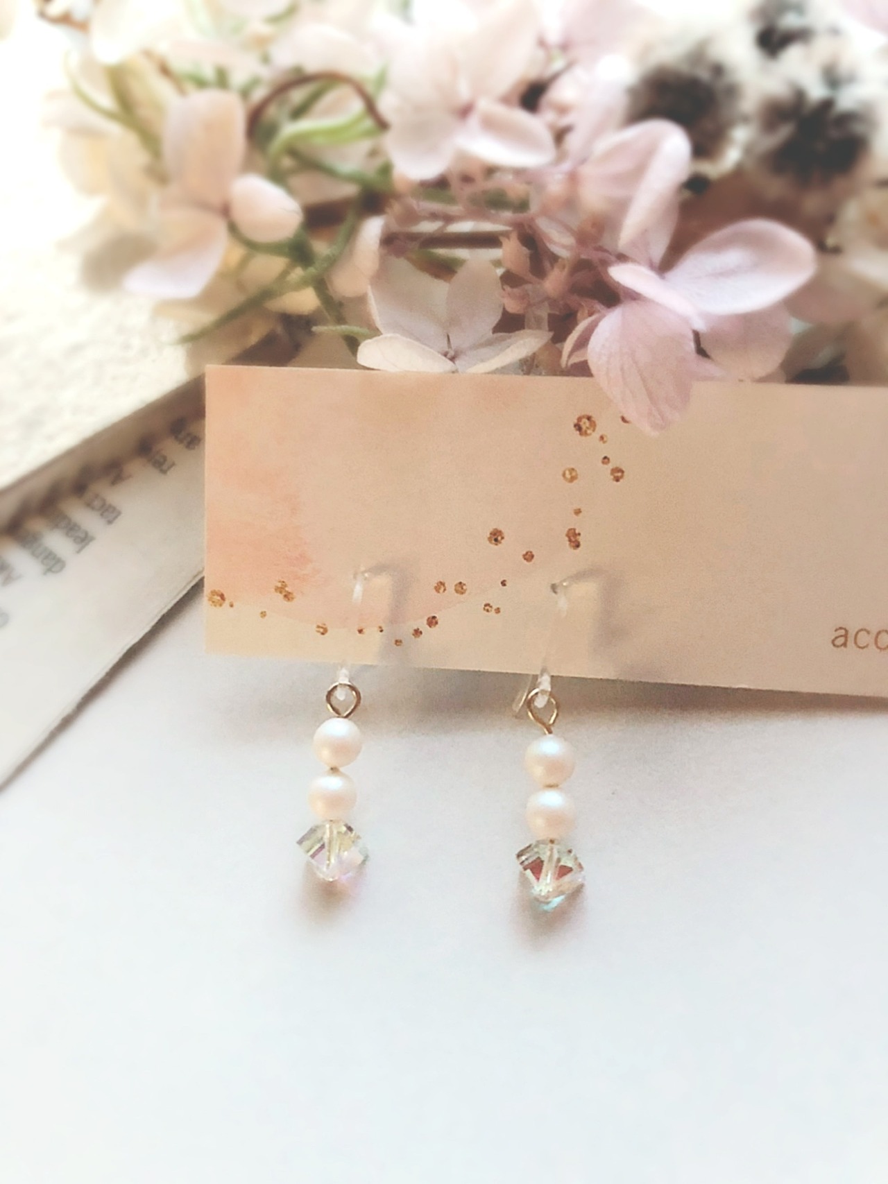 ☆4mmのマットパールとキューブ状のスワロフスキーを組み合わせました