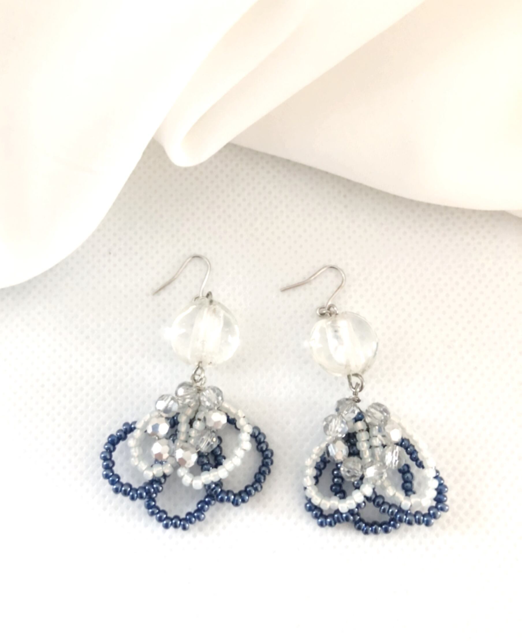 ☆ブルー系を組み合わせたくてガラスビーズを編み編みしました