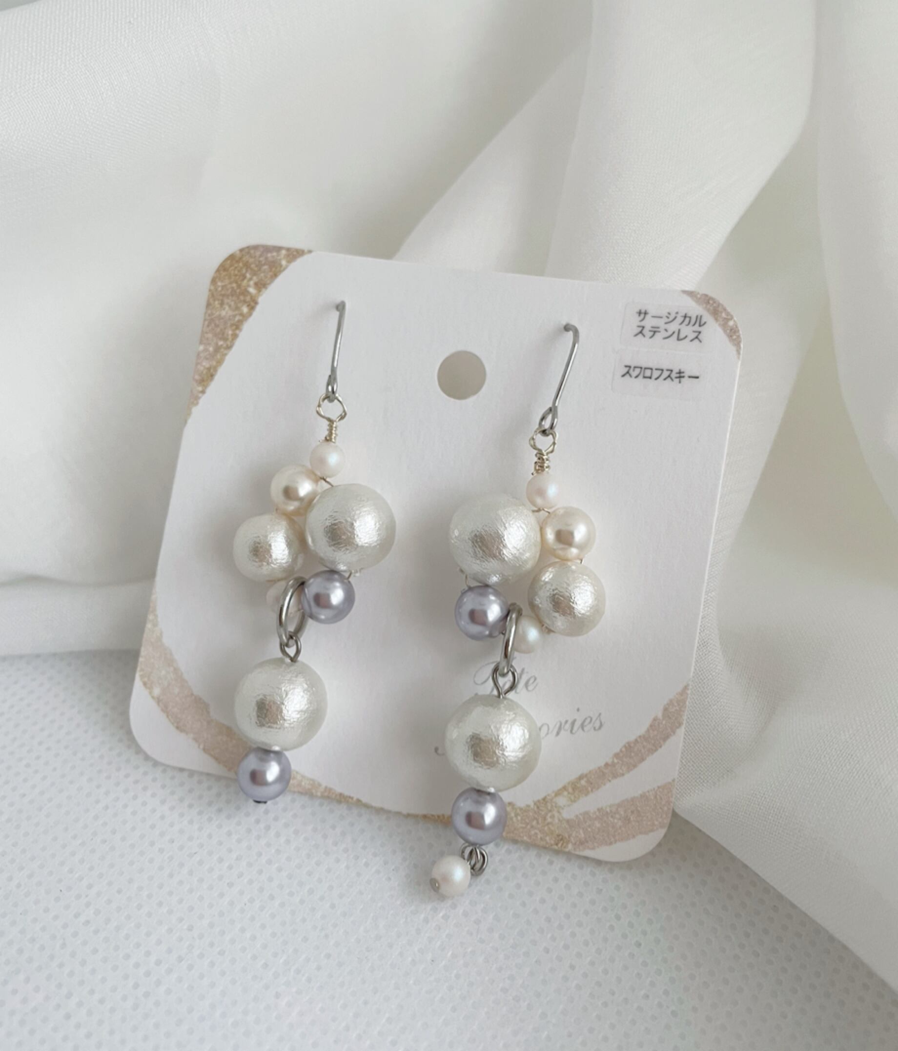 片方のみに小さなパールを追加してアシンメトリーにしました
