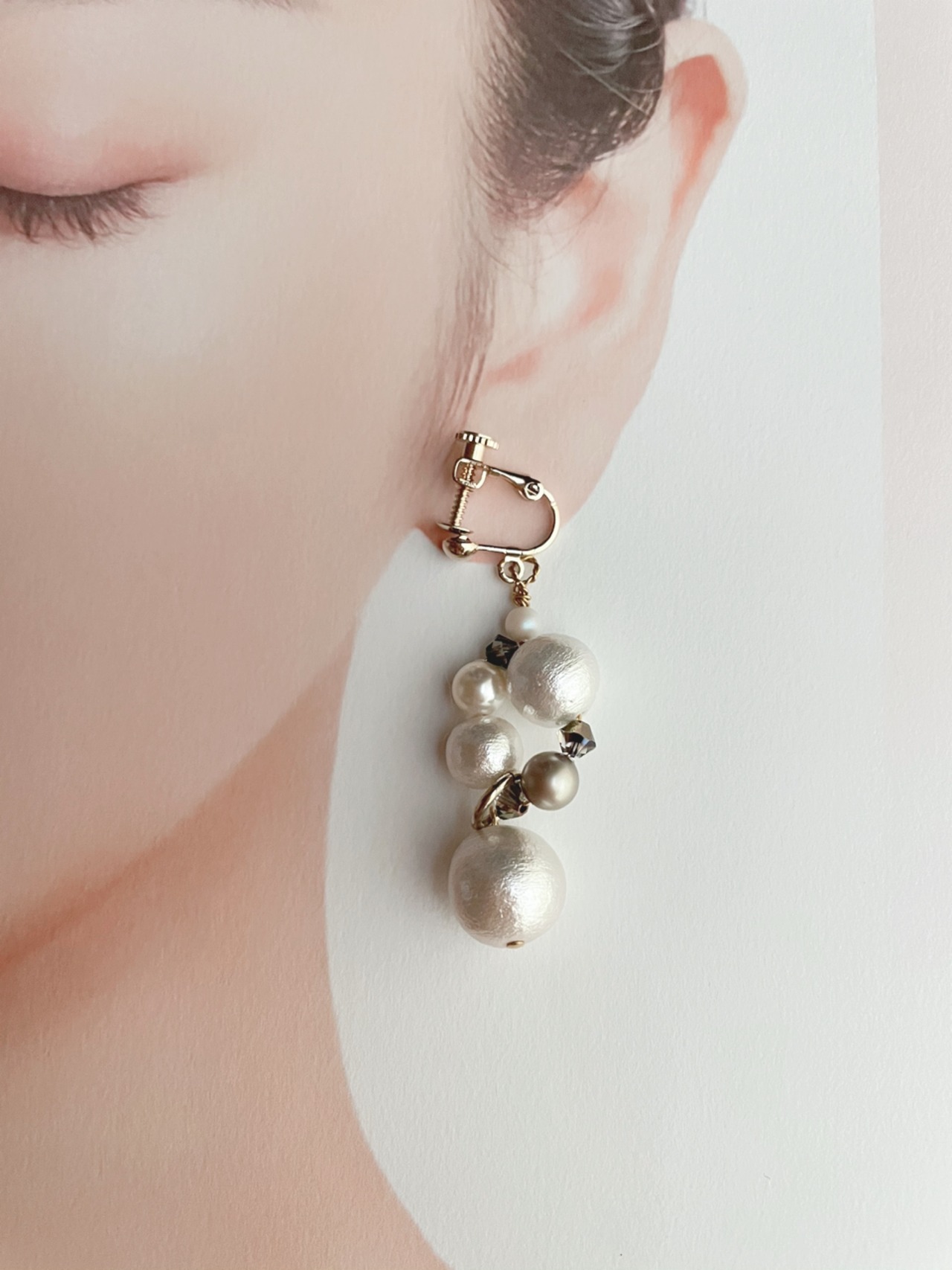 少しデザイン性のあるパールのイヤリングが欲しくて作ってみました